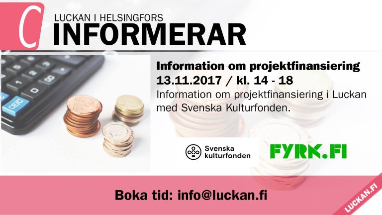 Har du en projektidé du vill förverkliga? Och behöver medel? Den allmänna ansökningstiden till Svenska kulturfonden inför år 2017 för privatpersoner, arbetsgrupper och samfund är 1-30.11.2017 Vill du fråga råd innan du skriver en ansökan till Svenska kulturfonden? Nu kan du boka in dig eller din arbetsgrupp på en projektklinik i 20 minuter/sökande med ombudsmännen…