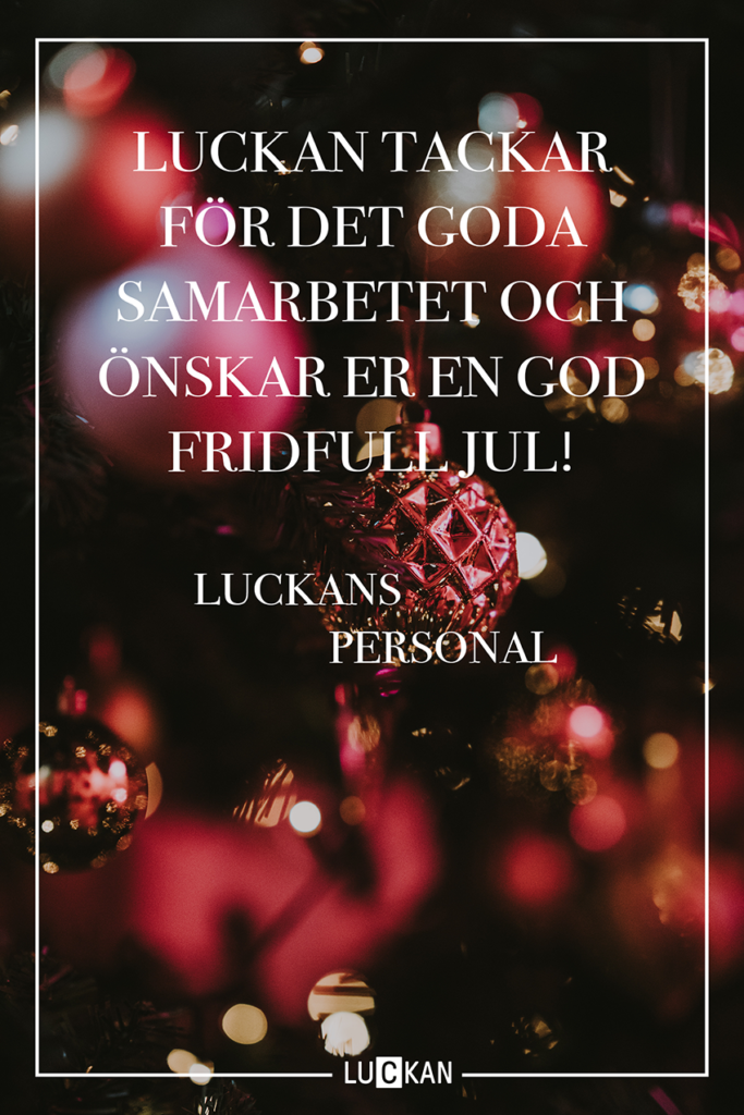God Jul & Gott Nytt År! Publicerat den 20 december, 2022Kategoriserat som Aktuellt, Blogg, Okategoriserade Luckan Helsingfors håller julstängt mellan 23.12.2022 och 2.1.2023.