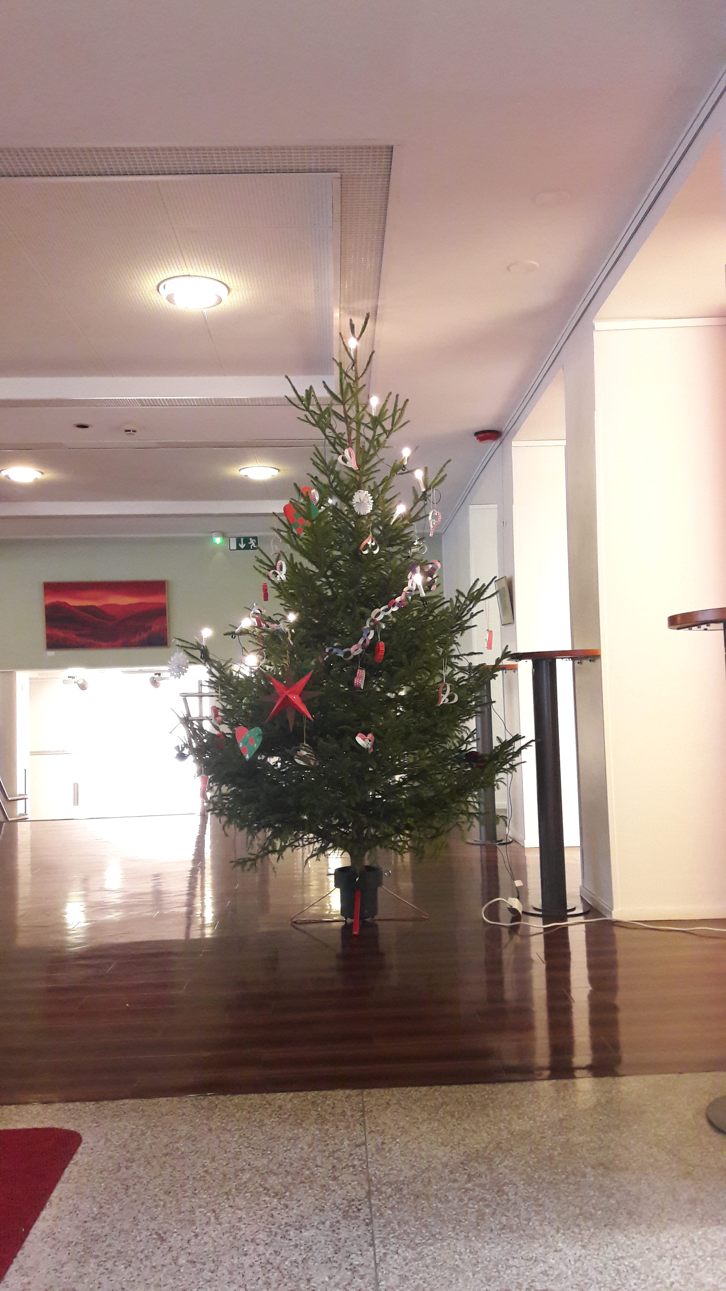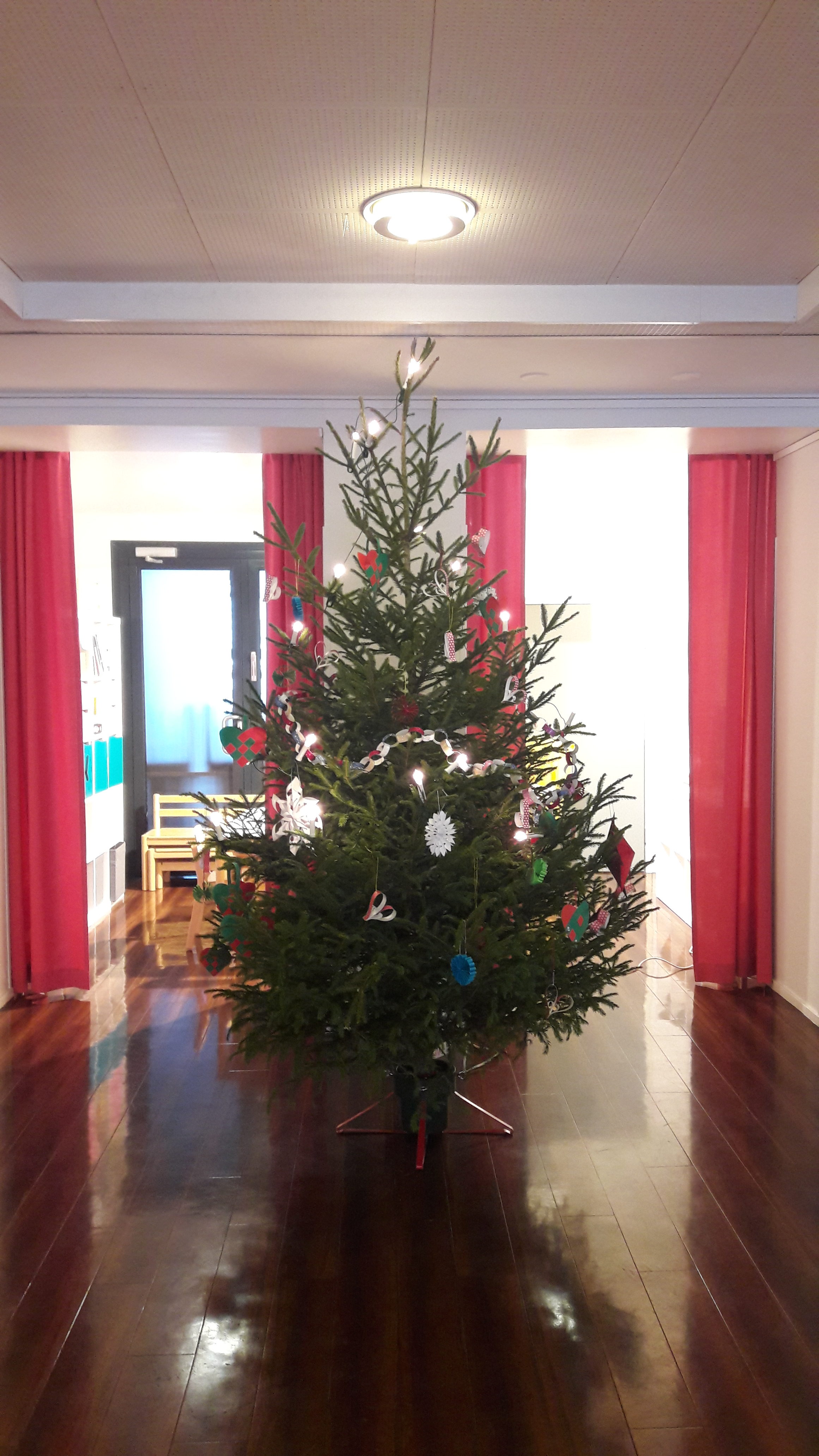Julgranen på Grand är traditionellt en skärgårdsgran, från Sundö gård på Pellinge, granen hämtas in till första advent och lysa upp vår aula fram till jul. Luckan brukar erbjuda olika grupper möjlighet att klä granen och det här året dekorerades den av elever från Borgå Folkakademi (Akan). Eleverna pysslade hjärtkorgar, pappersblommor och girlanger som nu pryder den så vackert dekorerade granen. Eleverna från Akan deltog i kursen Integration, kultur och lokalsamhälle som arrangeras av Luckans delprojekt Stora Komet, kursen har som mål att genom kreativa metoder främja både språkinlärning och inkludering i samhället.